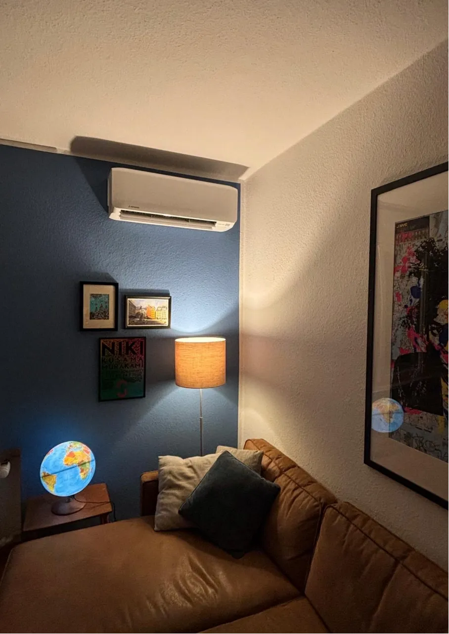 Ausgangssituation: Ziel war die Planung und Installation einer modernen Klimaanlage, die sowohl für Kühlung im Sommer als auch für zusätzliche Heizunterstützung in der Übergangszeit genutzt werden kann – bei möglichst hoher Energieeffizienz und minimaler optischer Beeinträchtigung.